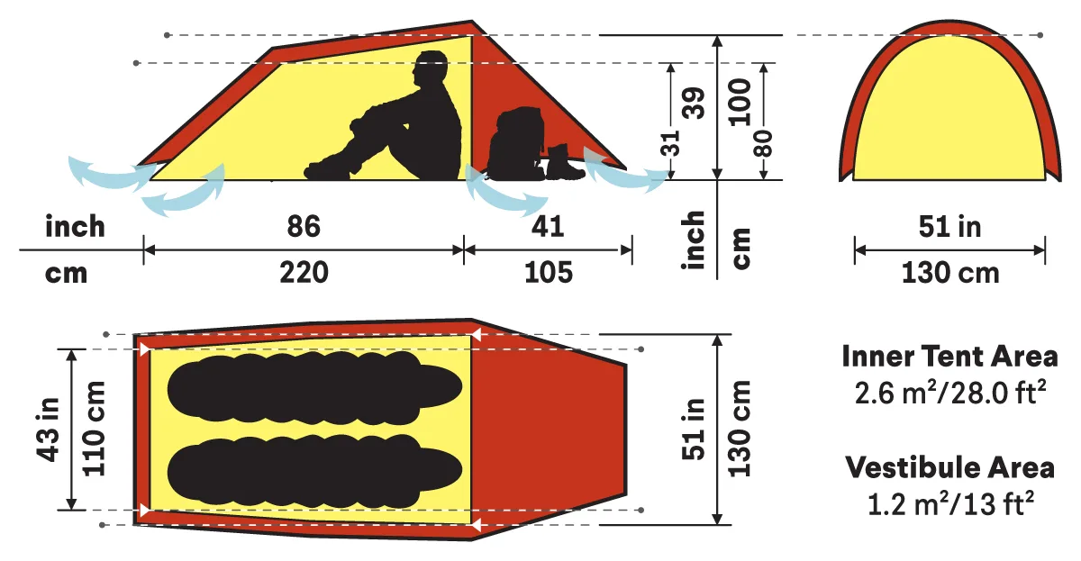 - Tunnelkonstruktsioon pakub parimat ruumi ja kaalu suhet ning on ideaalne valik aktiivseteks rännakuteks.